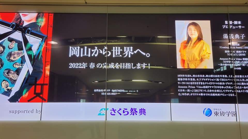 2021年6月2日 岡山県出身の映画監督 お知らせです! 岡山県出身の映画監督湯浅典子さんの制作されている岡山を舞台にした長編映画に弊社も微力ながら応援をさせて頂いてます。 只今、岡山駅南地下道ビジョンにて、作品の宣伝広告が流れています! 南地下道をお通りの際には少しだけ足をとめて 頂き目を向けて頂けたらと思います。 岡山人が岡山で世界に向けて発信する作品! 是非是非応援していきたいです! みんなで岡山をもっともっと元気に‼️