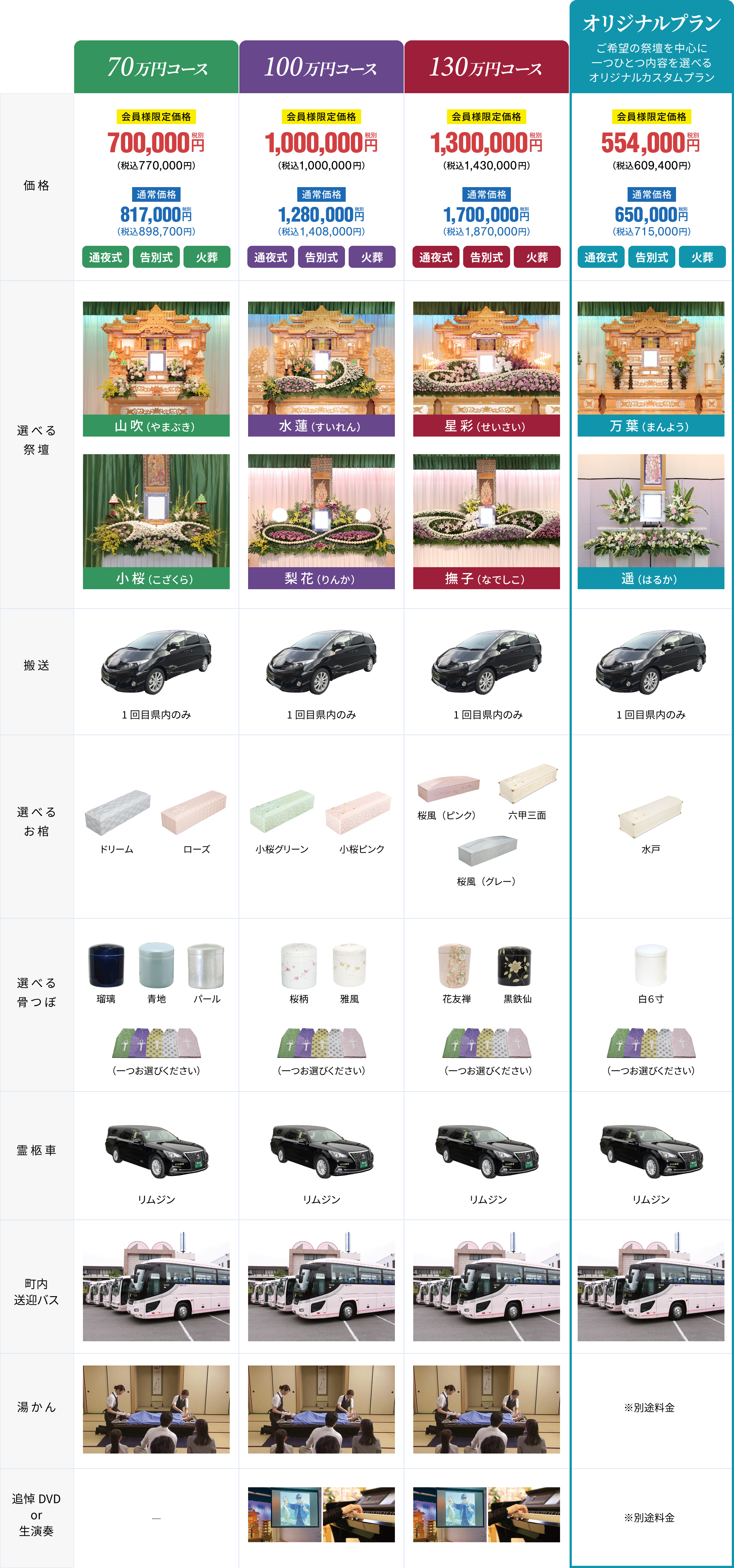 お客様のご要望や状況に合わせて選べるご葬儀プランを分かりやすく安心なセットプランでご用意しました。
